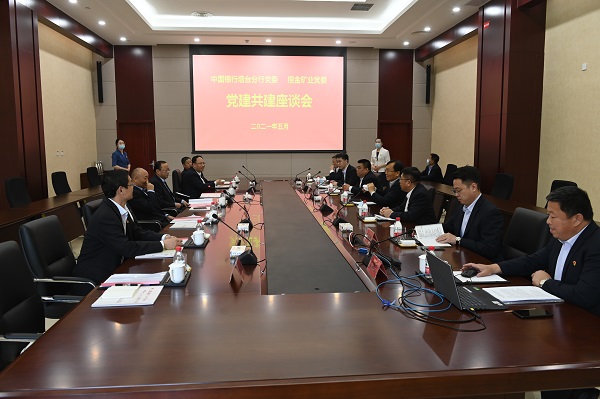 5月25日下午,招金矿业党委与中国银行烟台分行党委召开党建共建座谈会并签订党建共建协议,掀开了双方以党建引领,推动银企深度融合的新模式。这是今年以来,招金矿业党委结合党史学习教育活动,创新党建载体,丰富党建活动内容的新举措。活动当天,招金矿业党委书记、董事长翁占斌,党委副书记、副总裁王立刚,中国银行烟台分行党委书记、行长付廷泉,党委委员、副行长李爱东,中国银行烟台分行招远支行党支部书记、行长王涛,副行长刘庆博等相关人员出席活动。