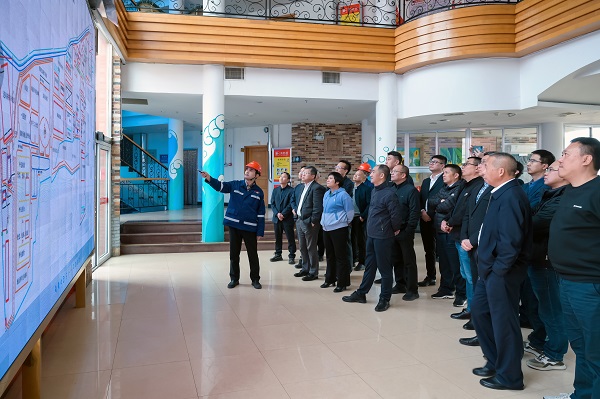 在夏甸金矿,考察团一行分别参观了该矿企业文化长廊、安全生产调度指挥中心以及精矿生产区,详细了解了该矿的发展历史,企业文化以及近年来企业在安全环保、设备管理、绿色矿山及党建工作等方面的情况,并就智慧矿山建设及生产新工艺进行了现场讨论交流。