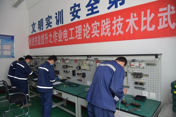 实训源于实需,实战检验实绩。为了让技能比武向更多岗位、更多职工延伸,该矿结合各工种专业特点和岗位职责需求,设置技能比武工种目录,采取专业竞赛+车间常态化比武相结合的形式,比武范围涵盖财会、电工、电气焊维修钳工、氰化冶炼、消防等数十项专业。企业围绕生产实际,在提升职工队伍素质工作中注重“三个结合”。一是坚持技术比武与服务生产安全紧密结合,“干什么、练什么”“缺什么、补什么”,引导职工立足岗位创造一流,全面完成各项生产经营任务;二是坚持技术比武与实施职工队伍素质提升工程紧密结合,通过整合资源,为职工在不同层次、不同方向上实现全面发展提供更大空间,搭建更大的舞台;三是坚持技术比武与创先争优活动紧密结合,动员和引导职工在岗位上成才,在实践中提高,实现岗位练兵、技术比武常态化与长效化,以赛代训、以赛促学,提高全员实战能力,进一步营造全员学习、增强才能的浓厚氛围。
